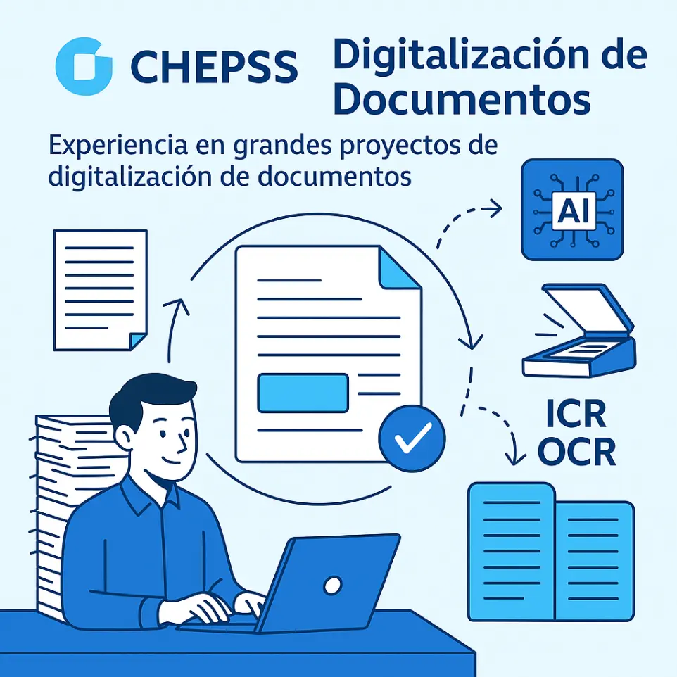Chepss es una empresa líder en la provisión de servicios de digitalización de documentos, diseñada para ayudar a las organizaciones a optimizar su gestión documental y mejorar su eficiencia operativa. Con un enfoque en la transformación digital, Chepss ofrece soluciones integrales que permiten a las empresas reducir el uso de papel, mejorar la accesibilidad de la información y garantizar la seguridad de sus datos.