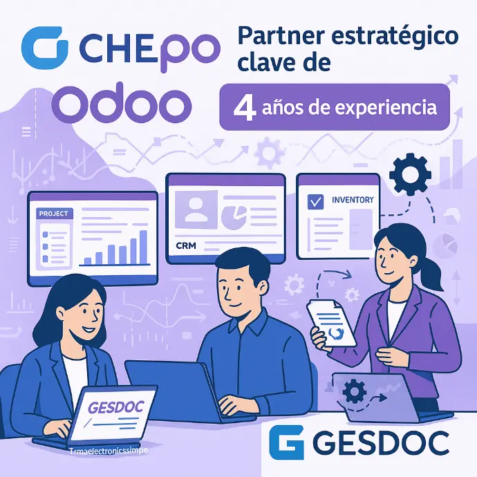 Additionally, Chepss is a partner of Odoo, one of the most comprehensive business management platforms on the market. Through this partnership, we offer our clients the opportunity to integrate our digitization and document management solutions with Odoo's tools, thereby optimizing their processes and improving decision-making.